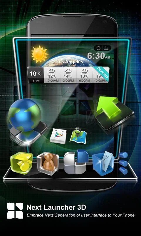 Next Launcher 3D ile 3D widgetlar, temalar ve canlı duvar kağıtları sizleri bekliyor. En popüler widgetlar olarak saat, müzik, hava durumu widgetları içerisinde bulunuyor.